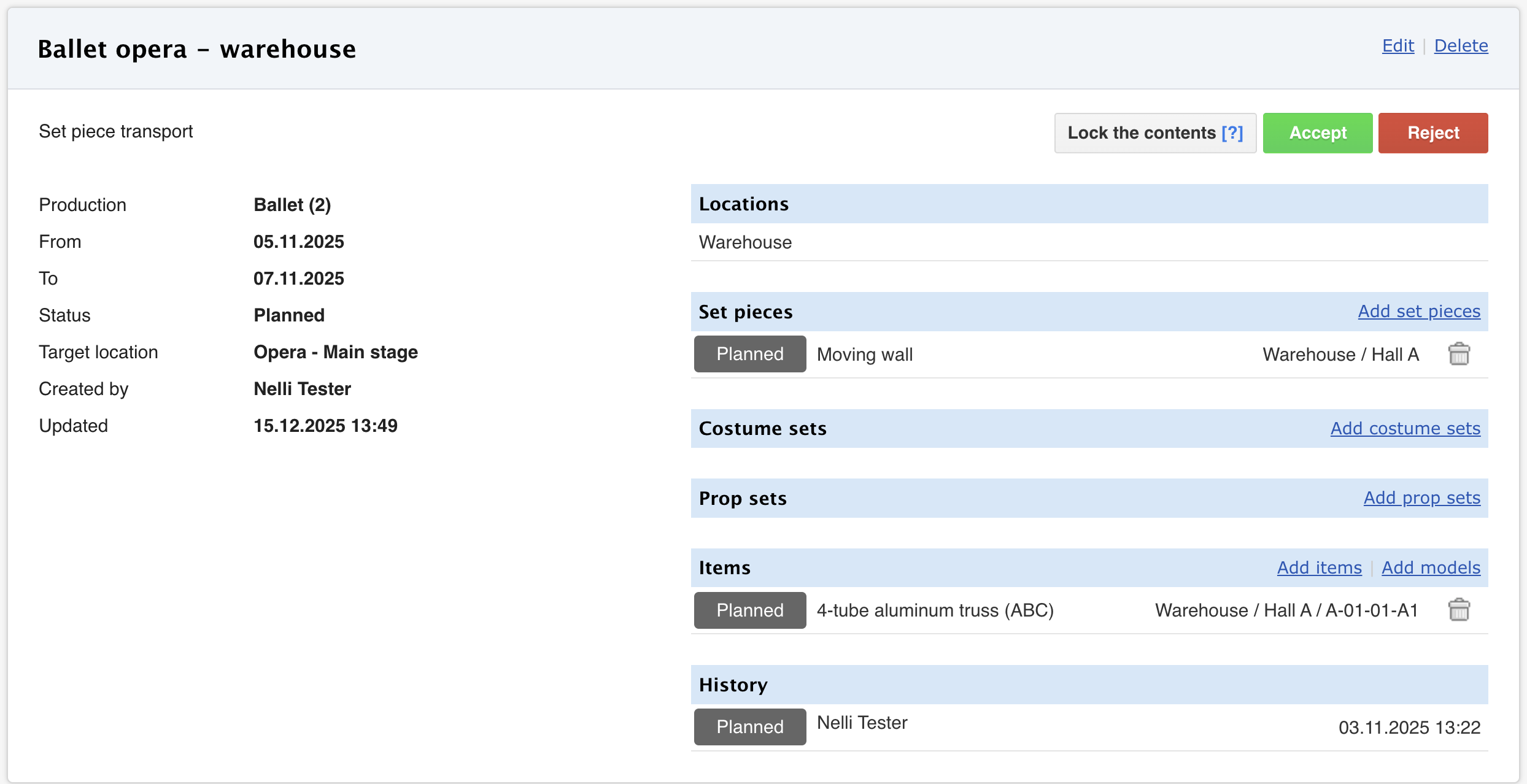 The Transports module allows you to easily create and execute transports between different locations. This article guides you on where to find the transport plans and what the individual transport view looks like.