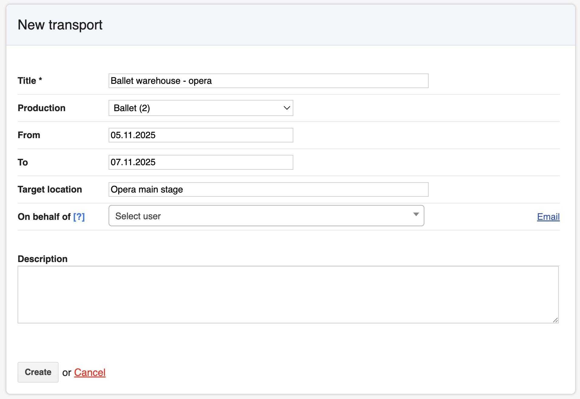 - On behalf of: (optional) You can add an extra email address to receive transport notifications