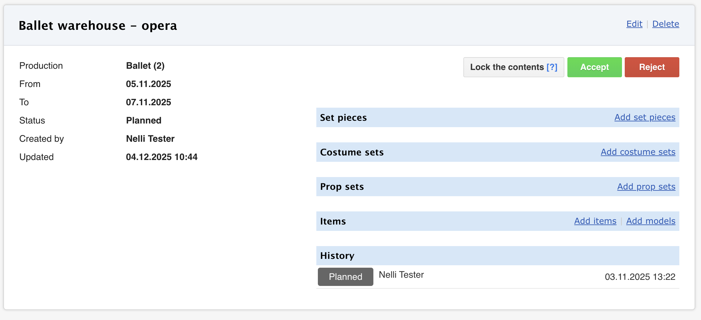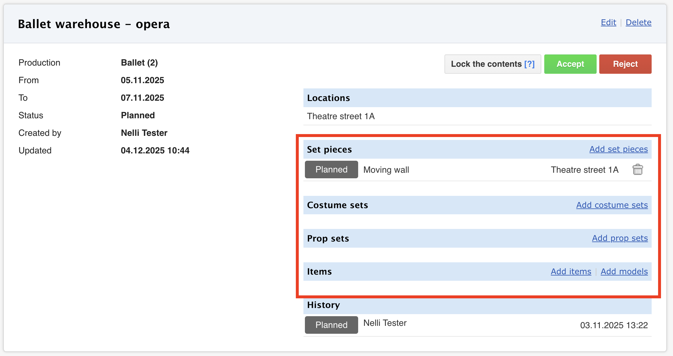 - Lock the contents – Optional setting. When a transport is locked, the items cannot be changed.