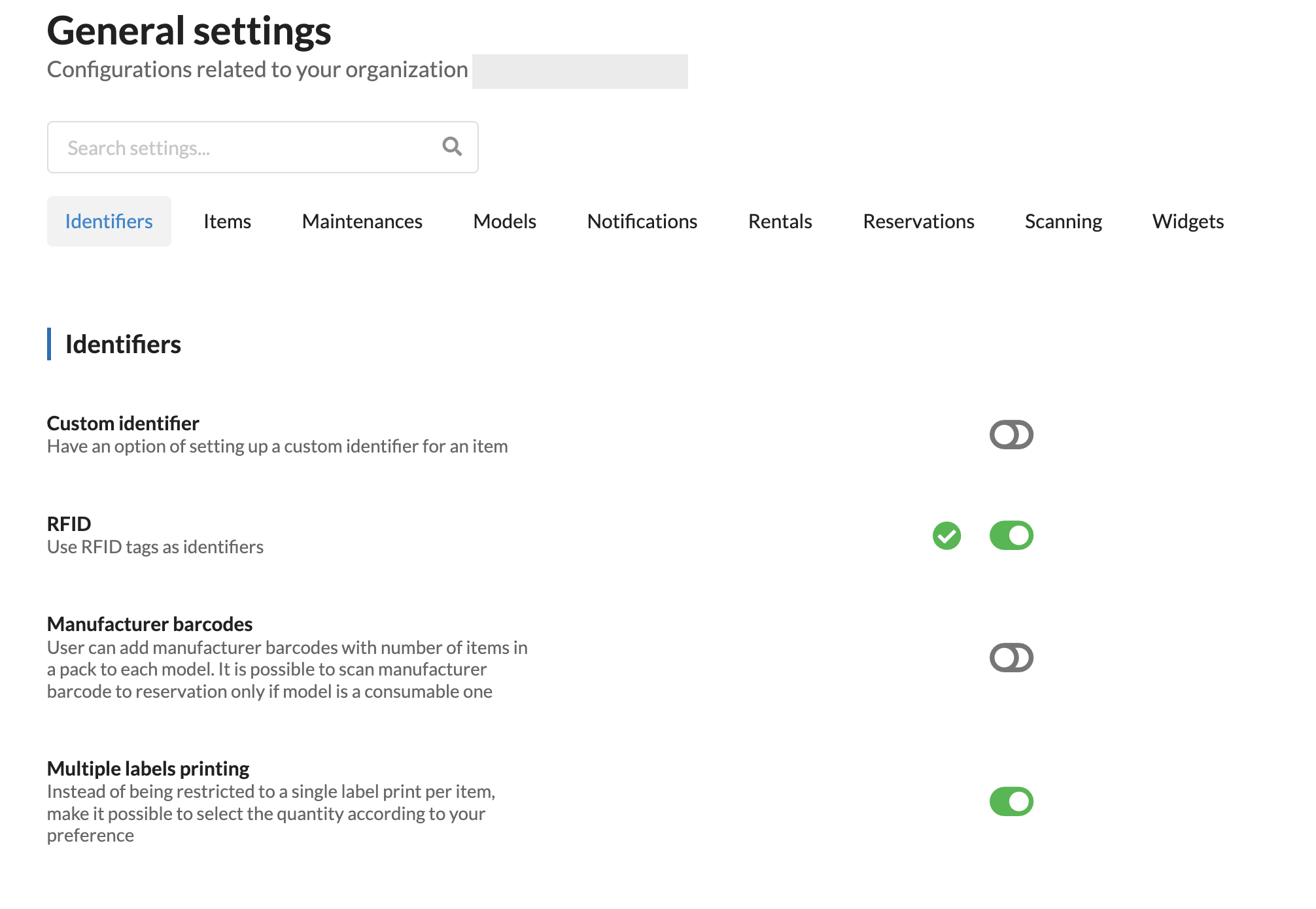 Admin users can define organization-wide general settings.
