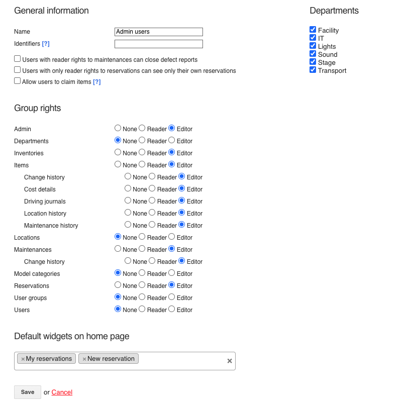 Note! From user's own profile you can give them additional rights separately. For example, access to multiple departments, that were not given for other members of the group.