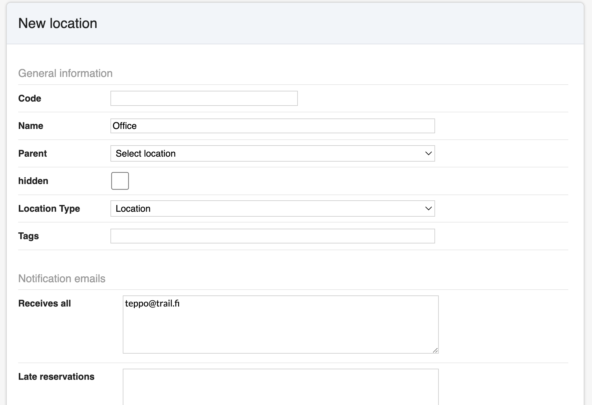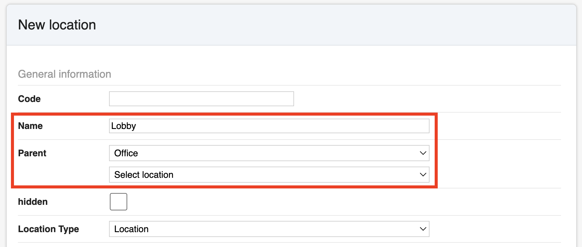 - Parent location: Choose the main location this belongs to.