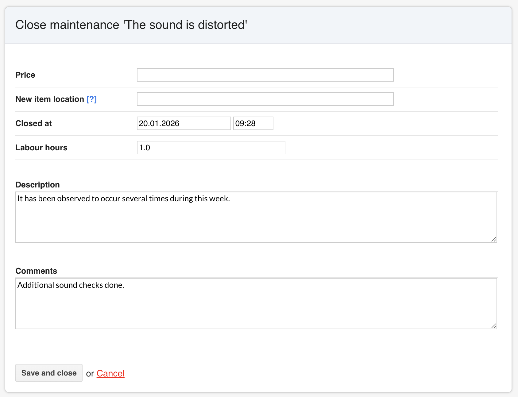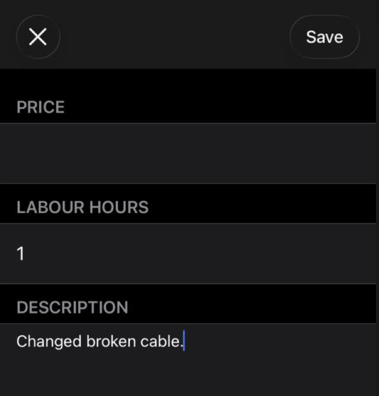 - Fill in any final details, such as labour hours, or description.