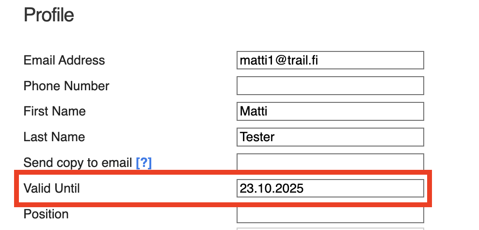 - Valid Until → set the date after which the user should no longer be able to log in with their Trail credentials.