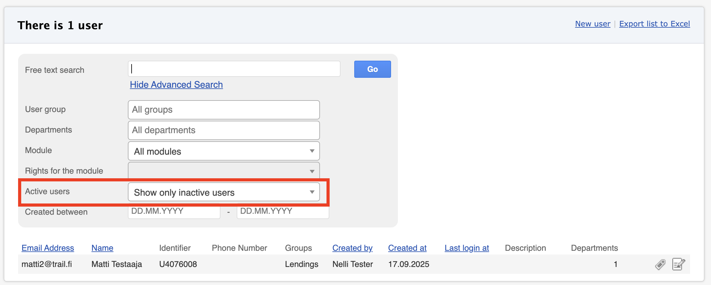 - Under Active users, select Show only inactive users