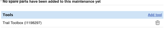 This feature allows to mark which items have been used as maintenance tools. Please note that items used as maintenance tools must be created in Trail.