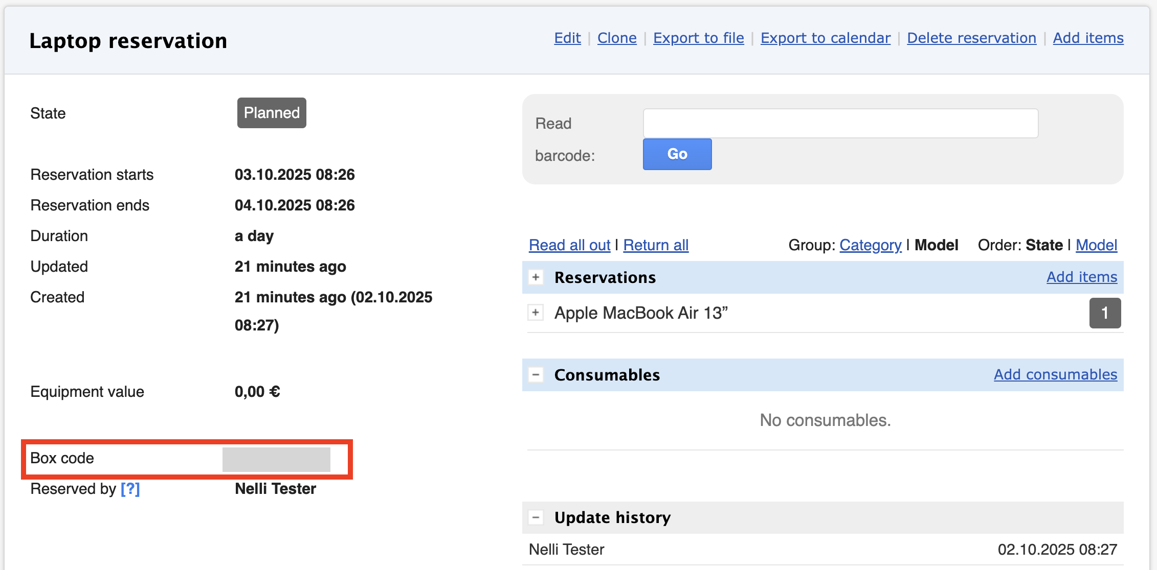 - The reservation is updated automatically, and the item will appear as reserved.