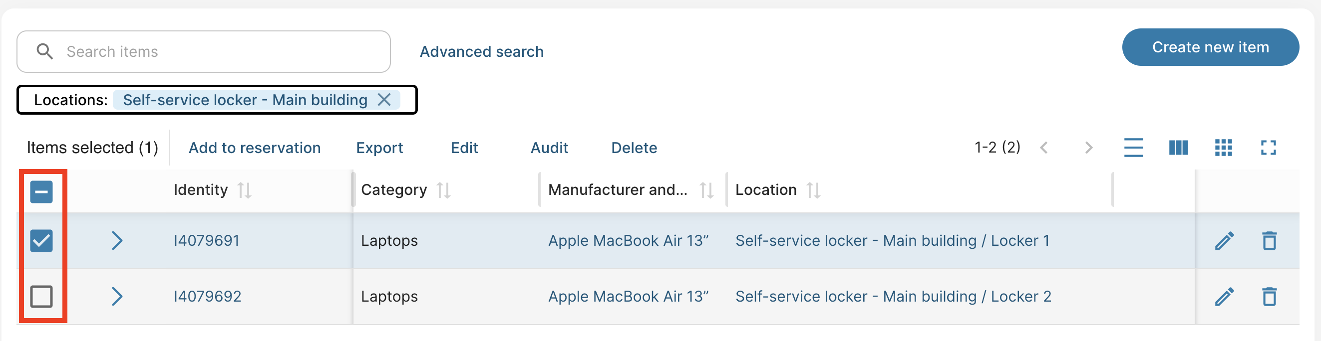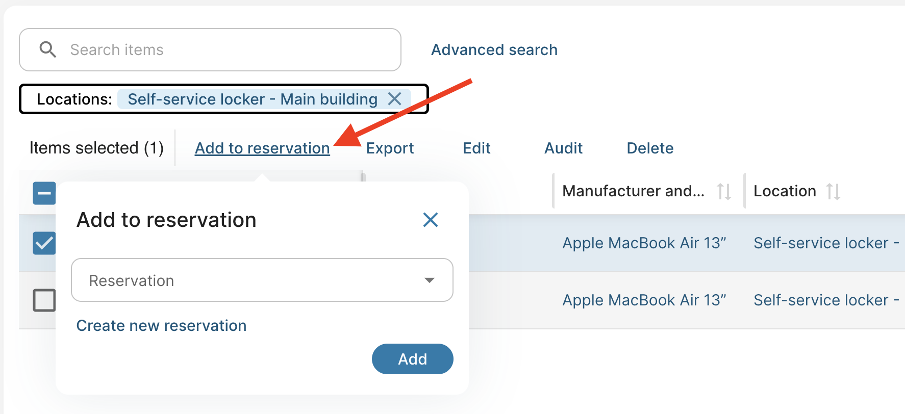 - You can add items from one or several lockers to a reservation.