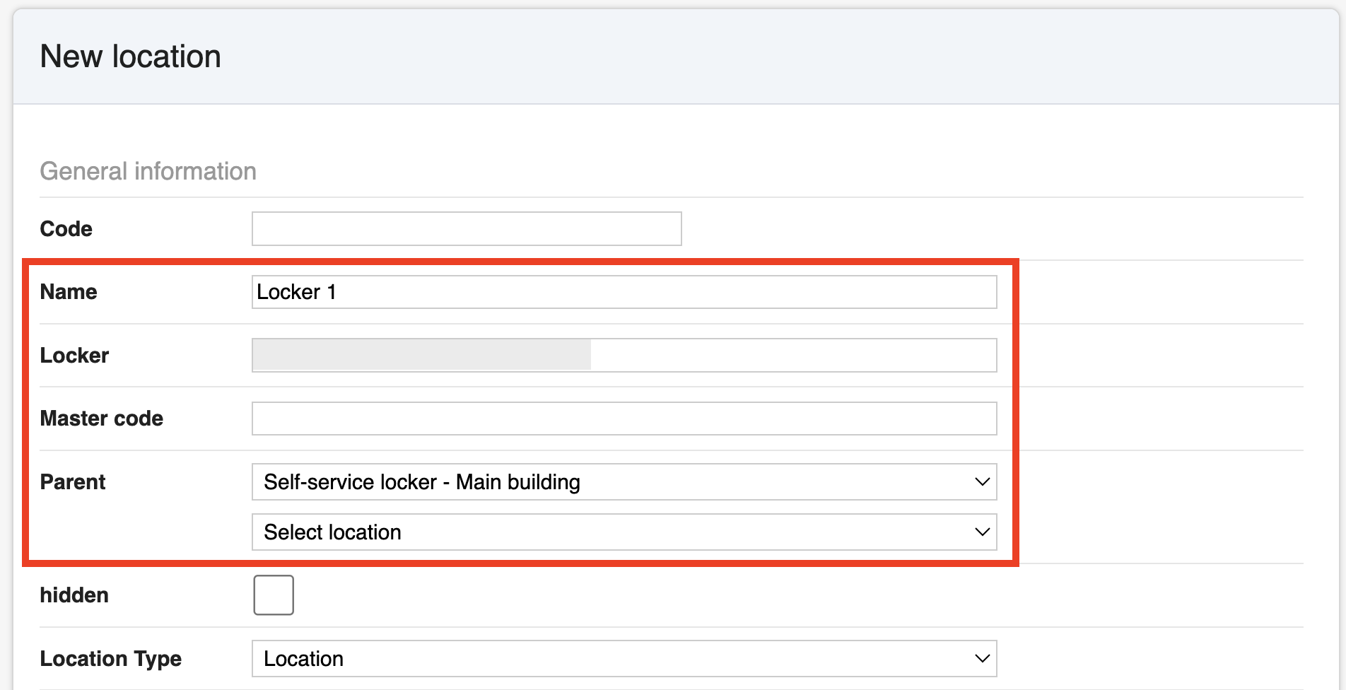 - Parent location: Select the locker you just created.