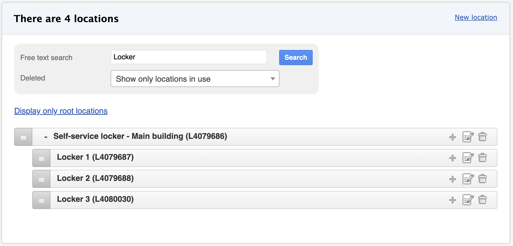 - Locker structure: The locker is created in Trail as a location, and each individual locker as its sub-locations.