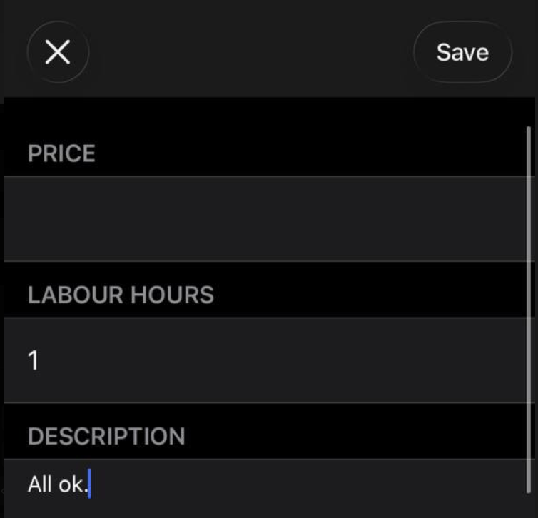 - Spare parts – Record used spare parts (stock decreases automatically for consumables)