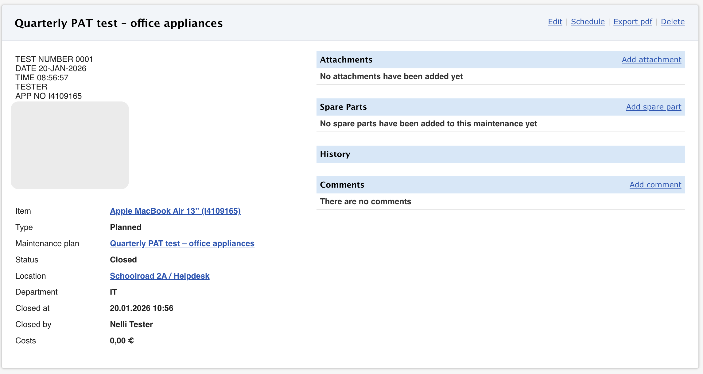 - Maintenance (20.01.2026) already exists for the item → duplicate import