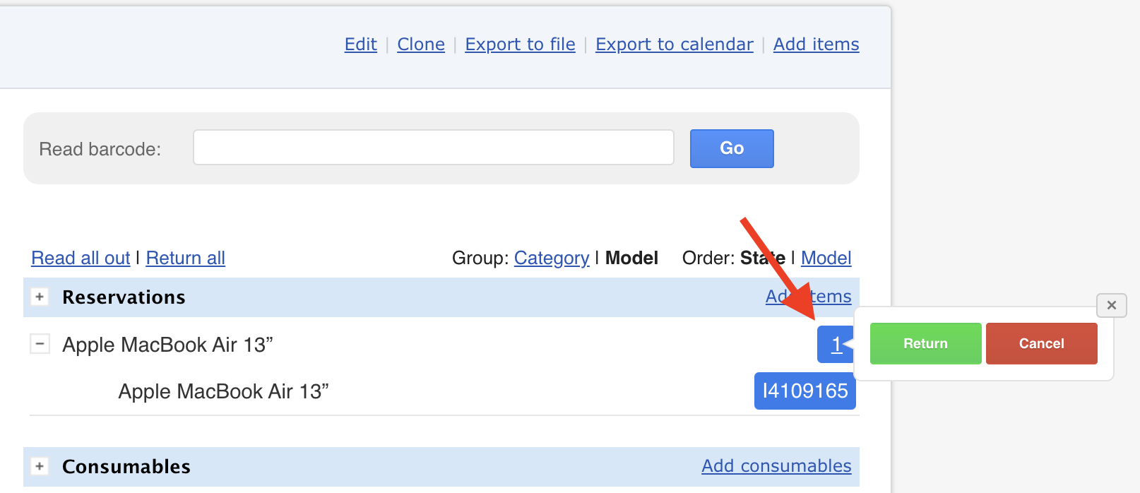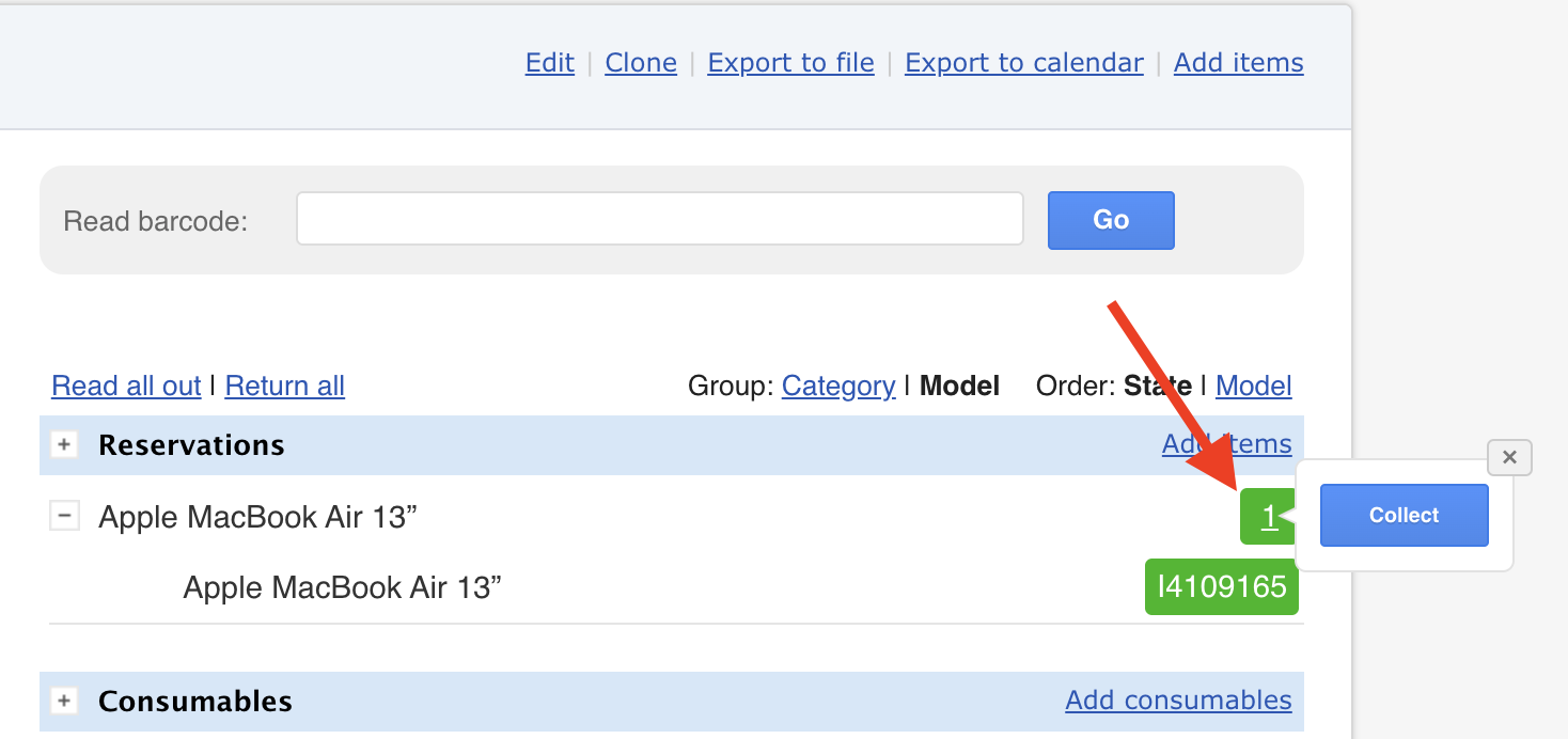 - Repeat for all items in the reservation