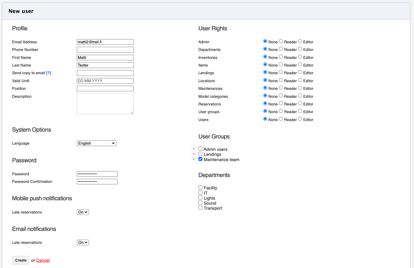 - After creating a user, double-check their departments and groups to ensure correct access limitations.